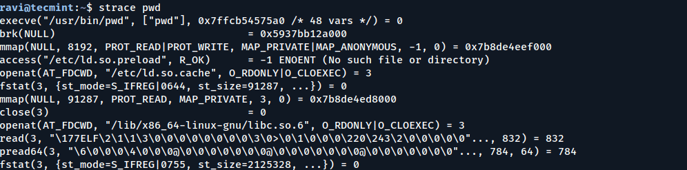 strace pwd