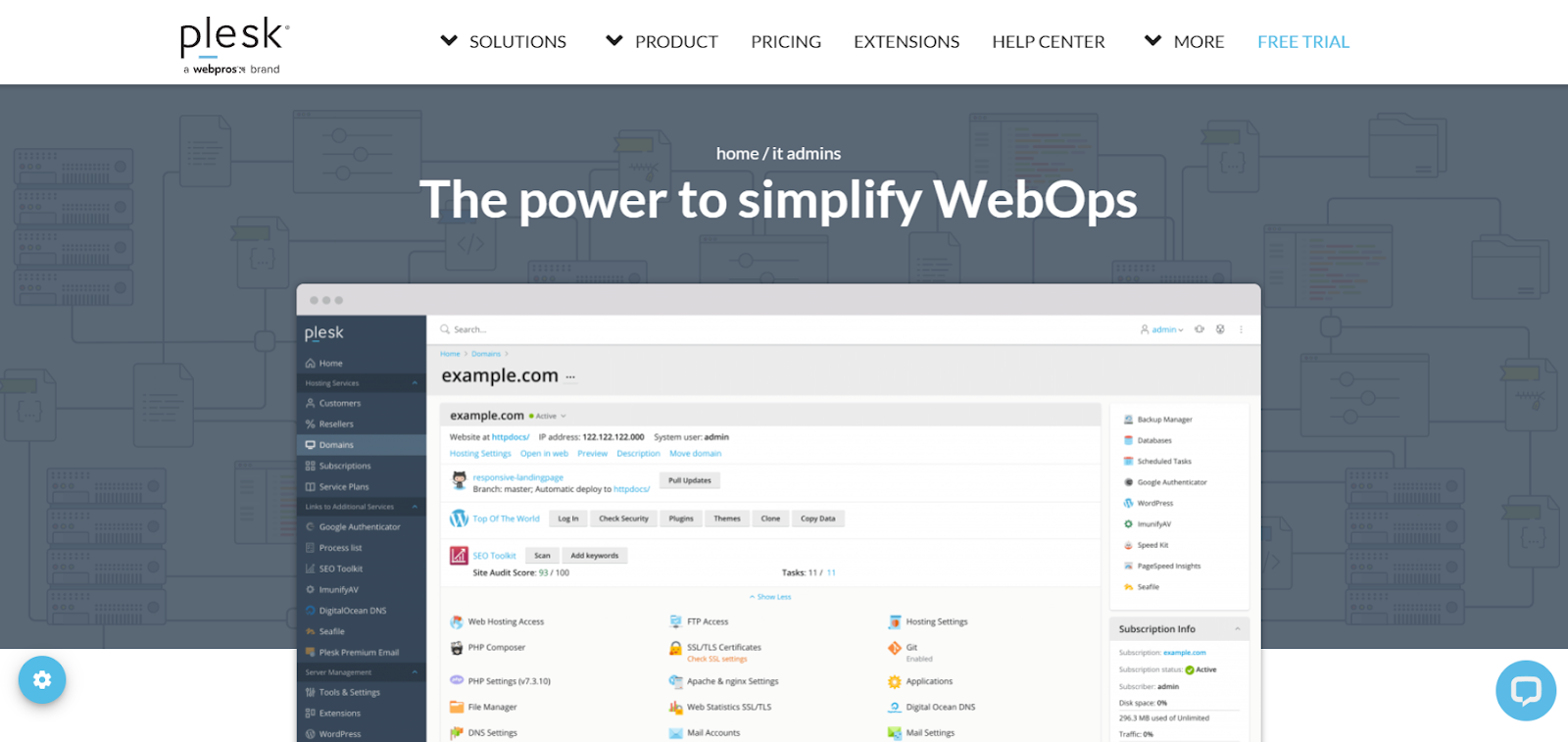 Plesk is well-regarded for its ability to simplify what’s often called “WebOps”. This makes it easier for IT administrators and web professionals to manage their servers and websites.