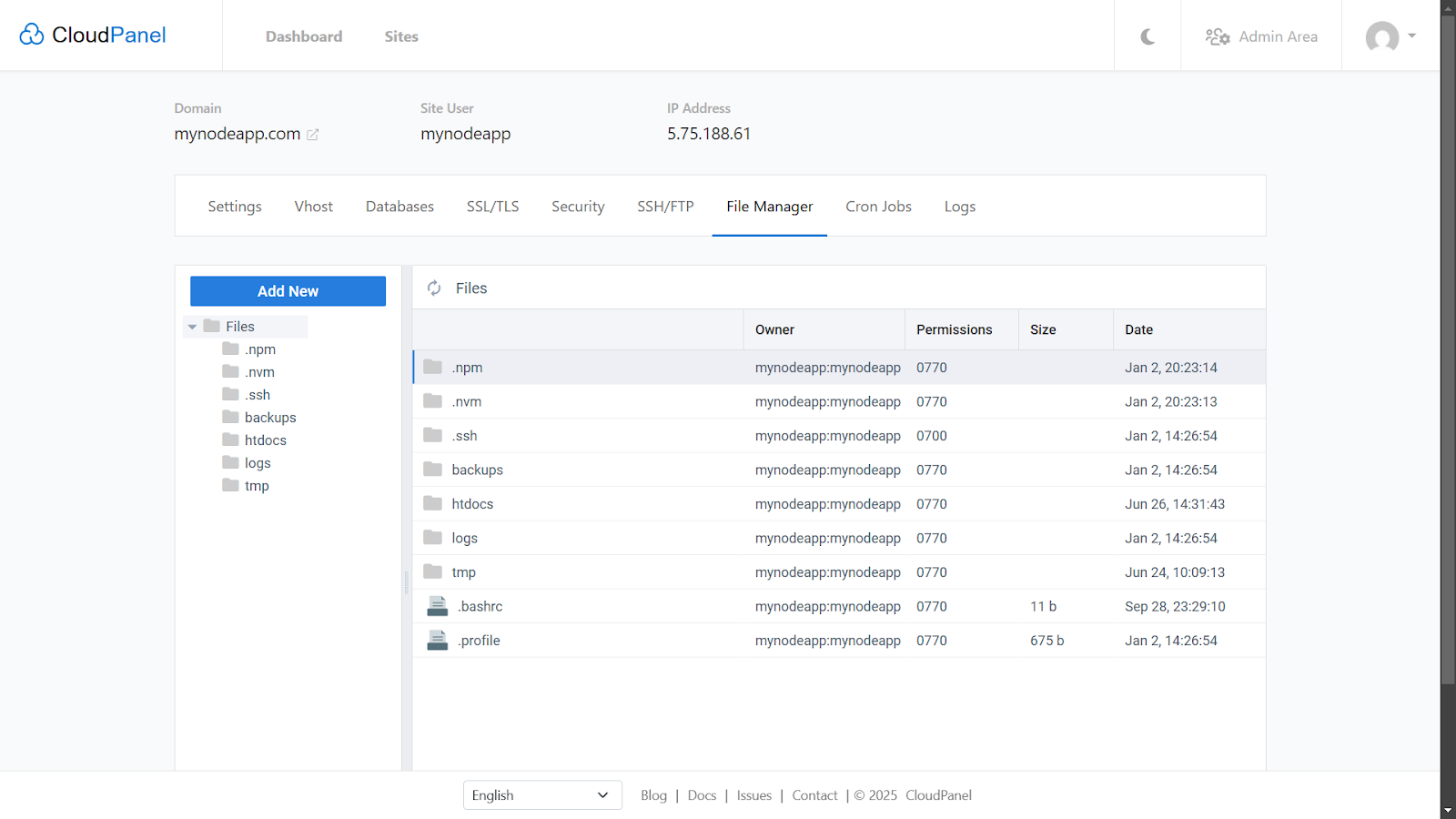 CloudPanel is a modern control panel with a clean user interface. It’s designed with developers in mind and offers support for popular technology stacks like PHP, Node.js, and Python. If you’re looking for a lightweight solution that doesn’t try to be everything to everyone, CloudPanel might catch your eye.