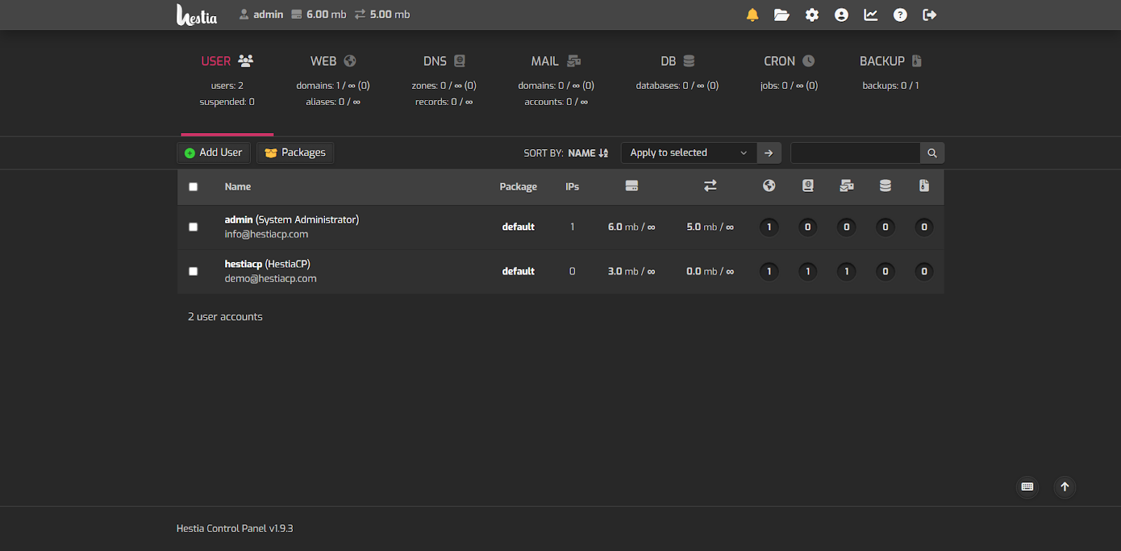 Also worth bearing in mind is that if you want an option to create and manage different workspaces from a single dashboard to manage server resources for multiple clients, then HestiaCP might not be right for you.