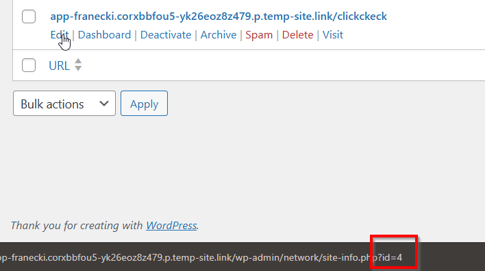 For example, in the above screenshot, the site ID is 4.