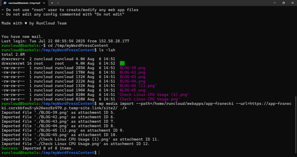 While you can upload themes and plugins through the WordPress dashboard, moving a large library of media files efficiently and correctly often requires diving into the command line. Being comfortable with basic Linux commands is a huge advantage for a smooth migration, especially when moving from one server to another.