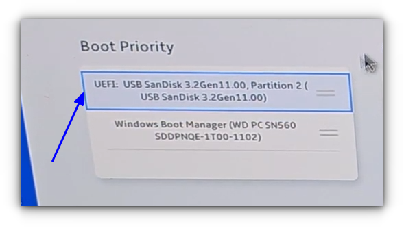 I did that to ensure that the system boots from the USB instead of the hard disk by changing the boot order.
