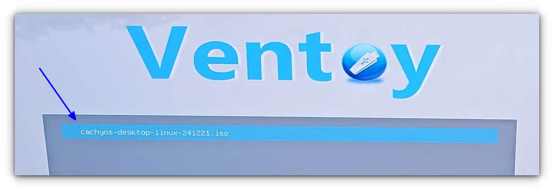 When the system booted next, Ventoy screen was visible and I could see the option to load the CachyOS live session.