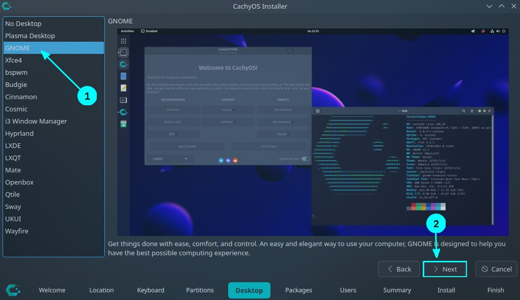 Again, active internet is mandatory to download the desktop environment and other packages.