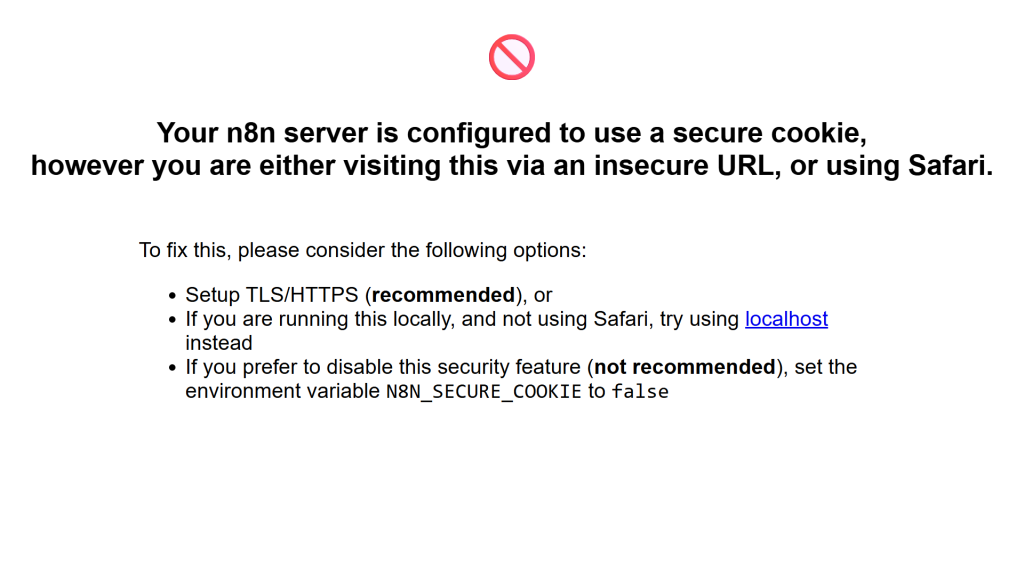After enabling the proxy, open your web browser and go to the domain you configured for your web application (e.g., https://n8n.example.com).