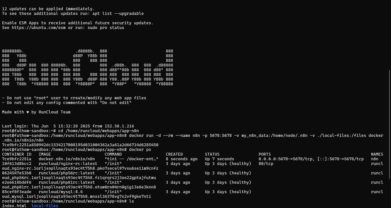 You now have a secure, fully self-hosted n8n setup – managed through RunCloud and running in Docker.