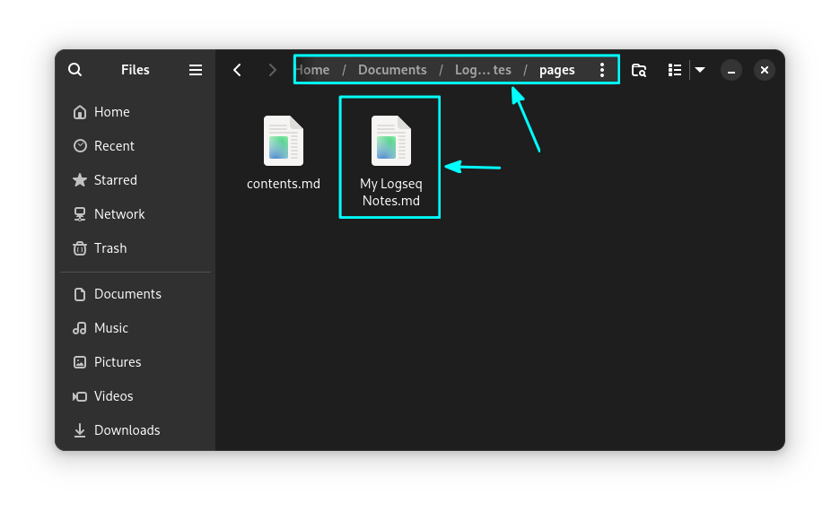 Pages directory inside the Logseq main directory contains all the pages you have created.