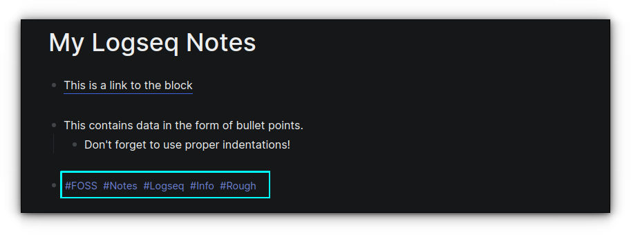 The main flexibility of Logseq lies in the linking of individual blocks. In each note, you have a parent node, then child nodes and grand-child nodes. These are distinguished by the indentation it has.