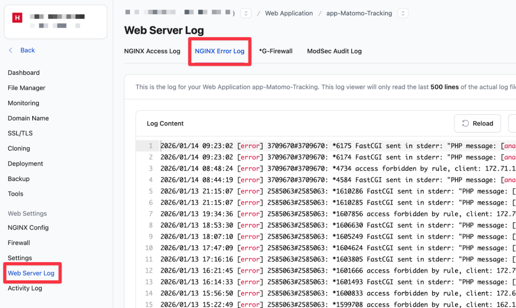 Identifying the cause of a site crash helps prevent repeat outages. Usually, this requires digging through confusing text files on the server’s log directory (/var/log/). However, if you are using RunCloud, then you can access the NGINX and Apache logs directly from the web interface.