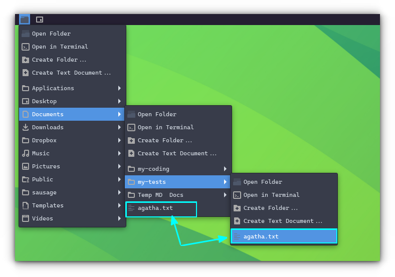 In Xfce, you can use the panel item “Directory Menu” to get quick access to files from anywhere. This is like the Places extension in GNOME, but better.