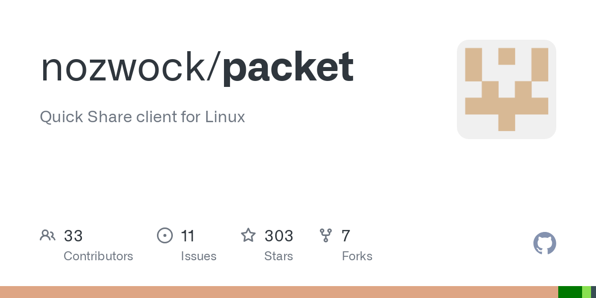 Packet is a Quick Share client for Linux that facilitates wireless file transfers from Android devices.