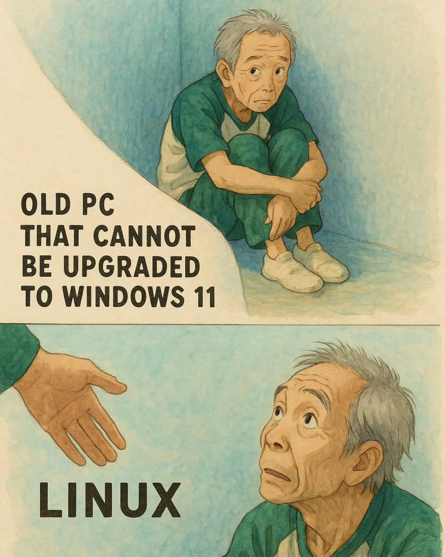 🤣 Meme of the Week: Linux, the savior of old hardware and those wronged by Microsoft and Apple.
