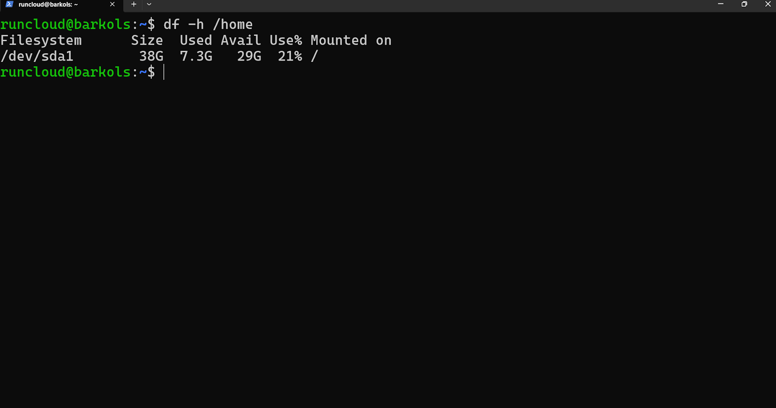 While you can simply type df, the output shows space in 1-kilobyte blocks, which isn’t very easy to read. We’ll use the -h (human-readable) flag for a much clearer view. To use this tool, open your terminal and run the following command: