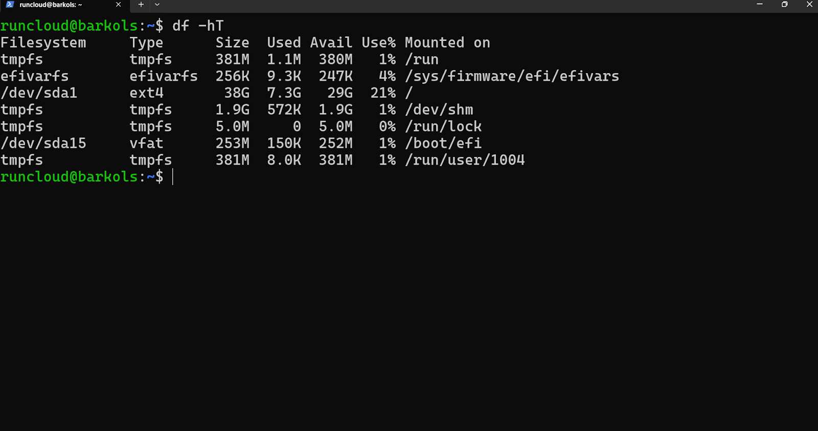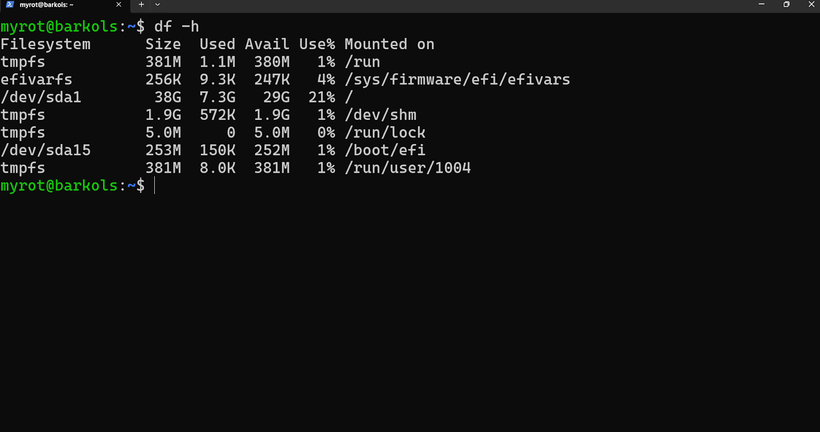- Mounted on: This is the directory in the file structure where the filesystem is accessible. The most important one is / (the “root” directory), as this is where your entire operating system and all its files are stored.