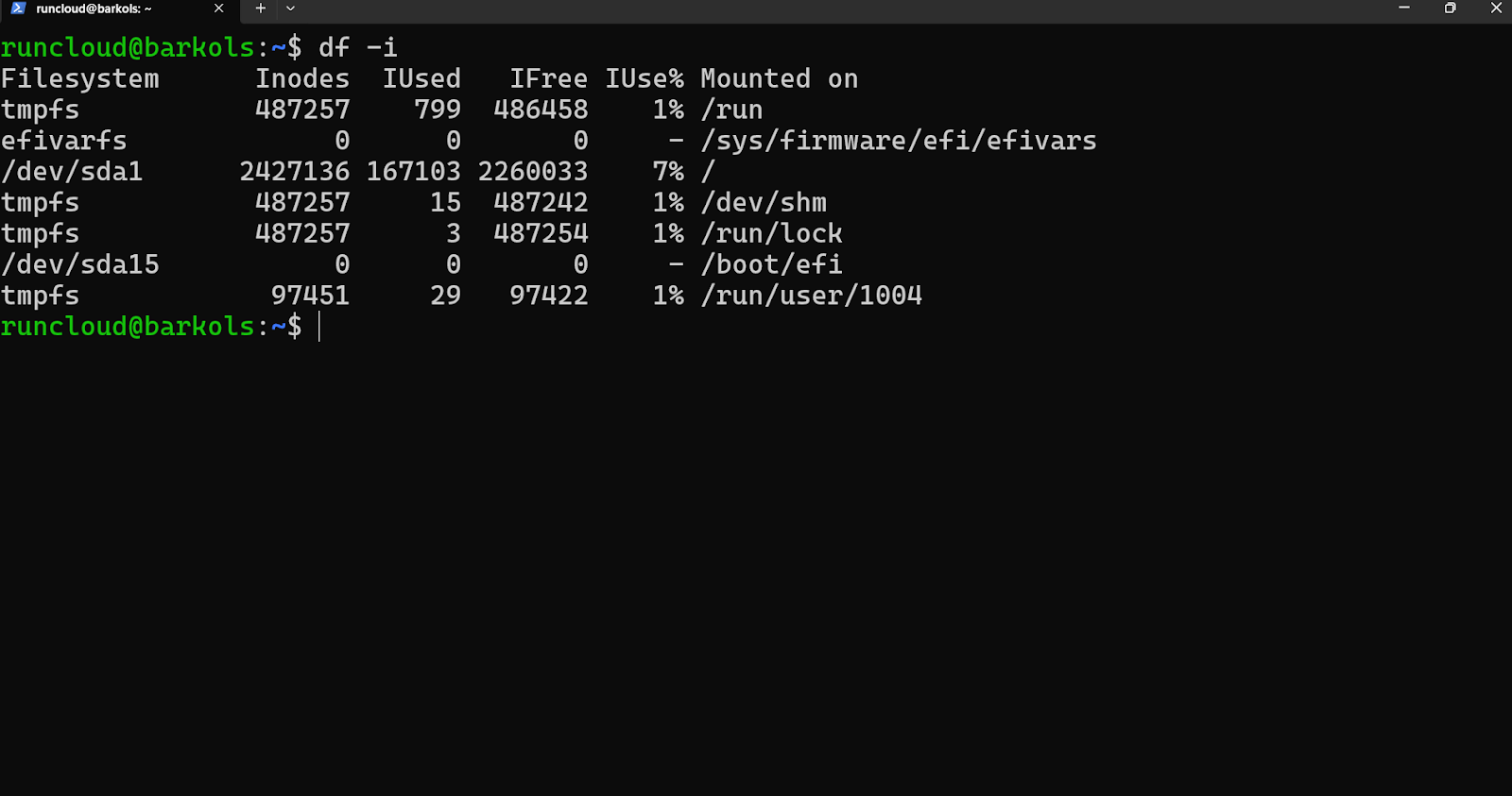 Sometimes, you can run out of “inodes” before you run out of disk space. An inode is a data structure that stores information about a file. Think of it like an entry in a library’s card catalog; every file needs one. If you have millions of tiny files, you might exhaust your inodes. To check this, use the -i flag. For Example: