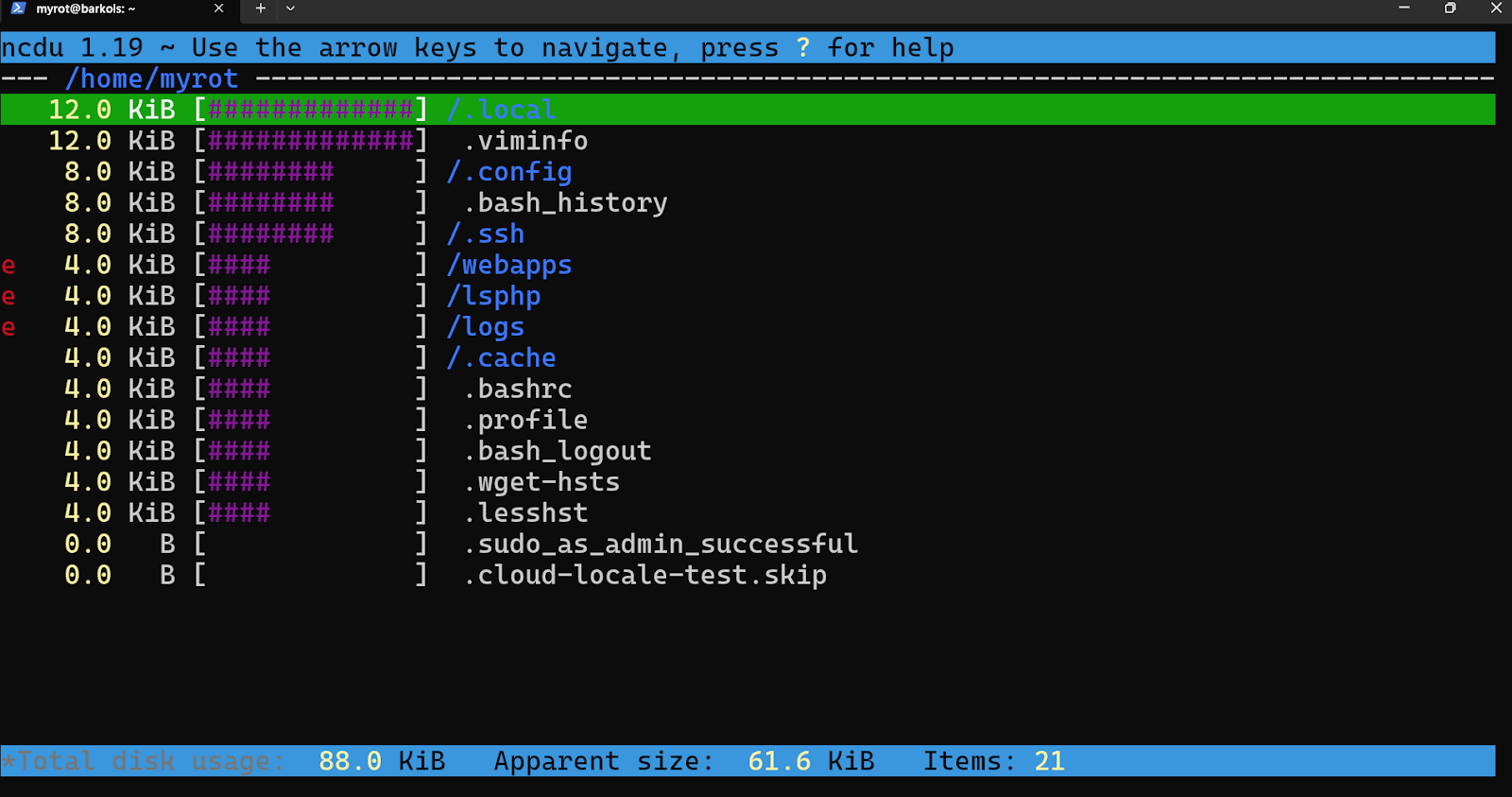 This is a fantastic command-line tool that scans a directory and then provides an interactive, navigable list. You can use your arrow keys to drill down into folders and quickly see what’s using the most space. To install ncdu on Debian and Ubuntu-based systems, run the command sudo apt install ncdu. For CentOS and RHEL systems, you can install it using sudo yum install ncdu. Once the installation is complete, you can scan the current directory by running the command sudo ncdu .