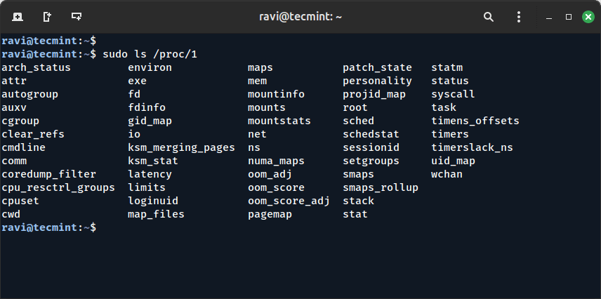 ls /proc/1
