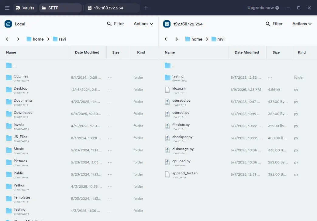 Click on the host, and in the session tab, you’ll find an SFTP option that lets you drag and drop files between your local machine and the remote server.