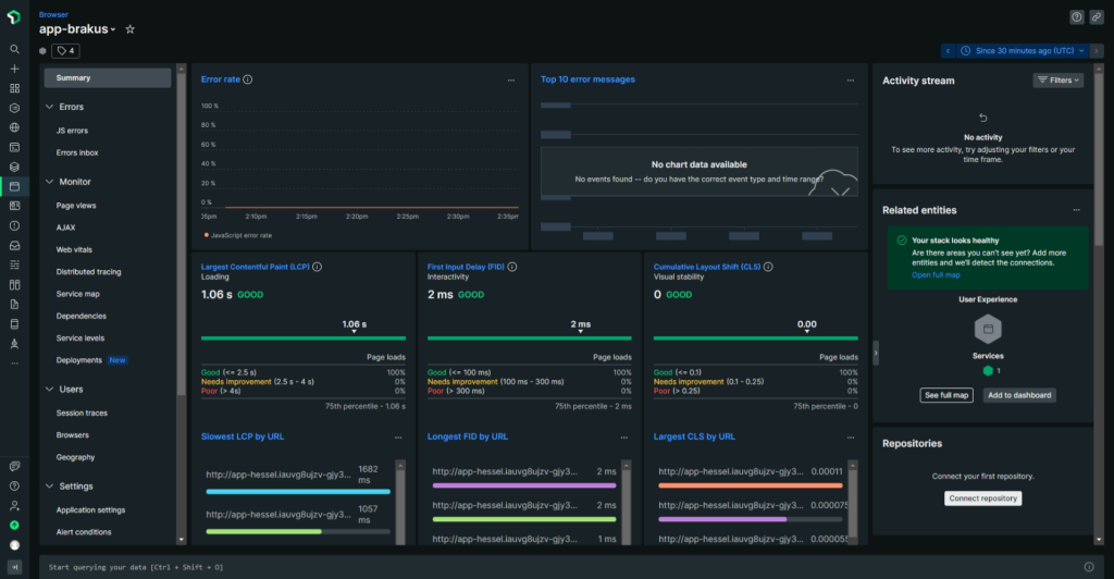 If you are running a website then you can take advantage of “Browser” monitoring functionality, which tracks your website’s Core Web Vitals.