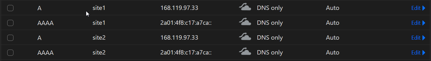 Also, create a CNAME record for www pointing to runcloud_site1.com, or a separate A record if you prefer. Add AAAA records if using IPv6.