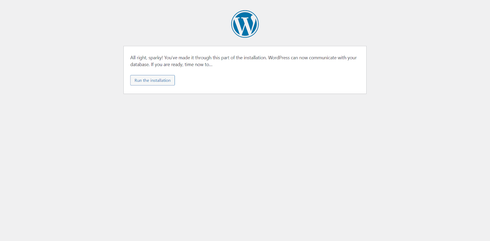 WordPress will attempt to connect to the database and create the wp-config.php file. Once the database connection is successful, click “Run the installation“.