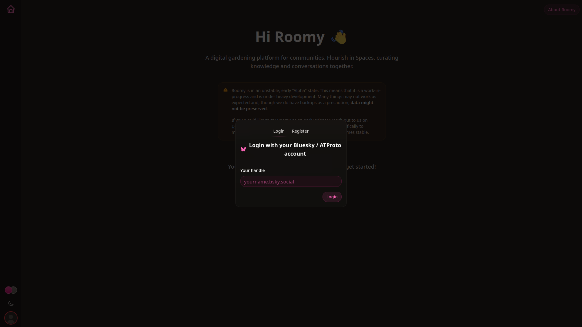 Right now, Roomy is a browser-based group chat app. Technically, there’s no sign-up process: you sign in using any existing Bluesky or ATProto account. The long-term goal is to let you bring your identity with you from any supported Fediverse platform. Once (planned) ActivityPub support is locked in, you’ll be able to sign in with Mastodon, Pixelfed, or any other network that uses this protocol.