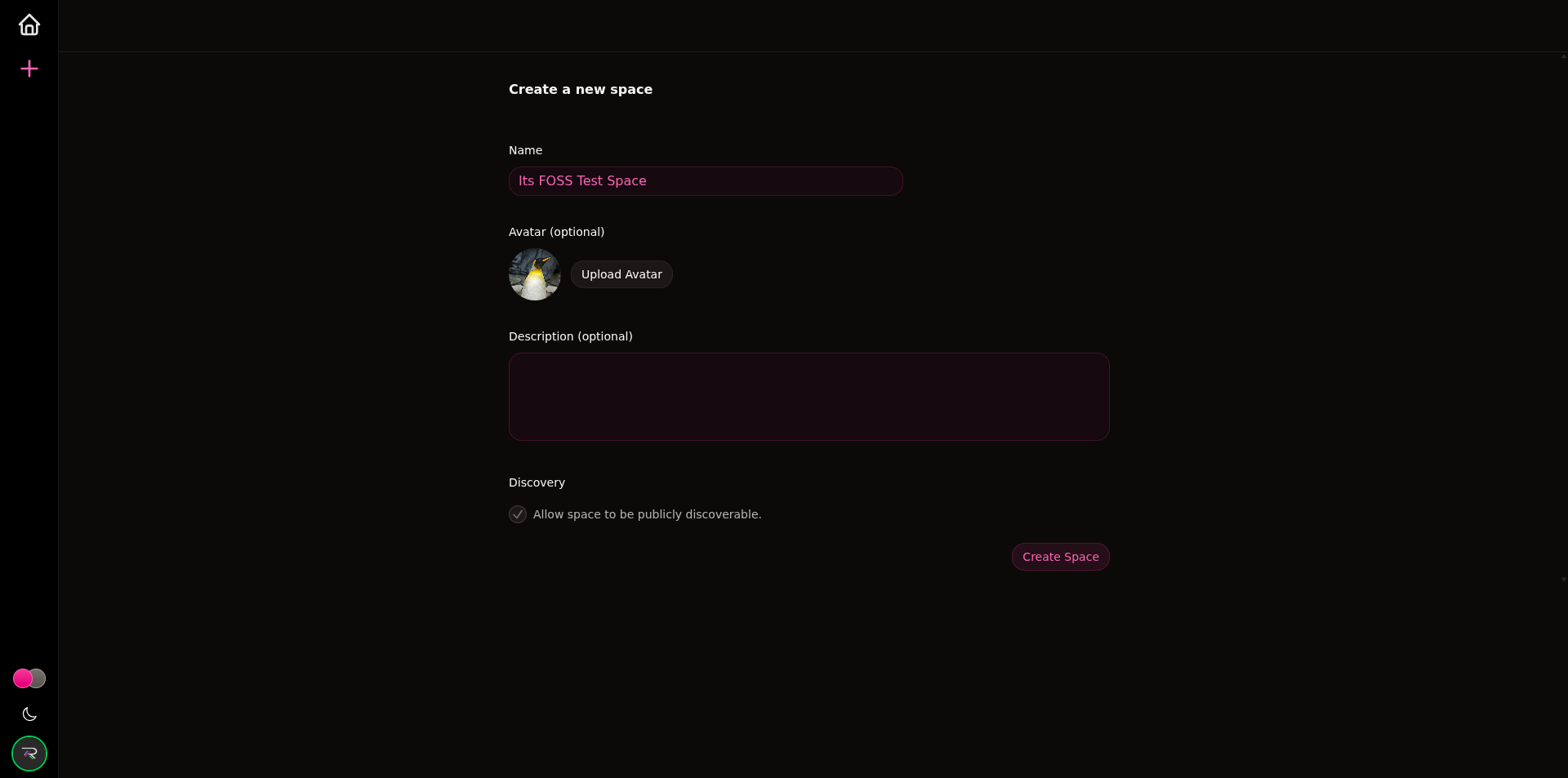 Creating a space is simple and intuitive: Click the plus icon, enter a space name, and optionally add an avatar and description. There’s also a discoverability option, but it’s currently disabled. Once you’re done, you just click “Create Space”, and you’re in. If you’d like to try it for yourself, you can head over to roomy.space and sign in with your Bluesky or ATProto account.