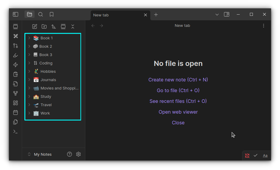 Obsidian organizes notes into folders and subfolders. With the Iconize plugin, you can set icons to folders.