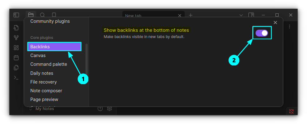I know that the backlink plugin is enabled by default but there is a useful feature that you’ll have to manually enable. It is “Show backlinks at the bottom of notes” option.