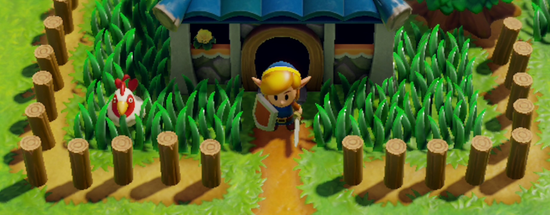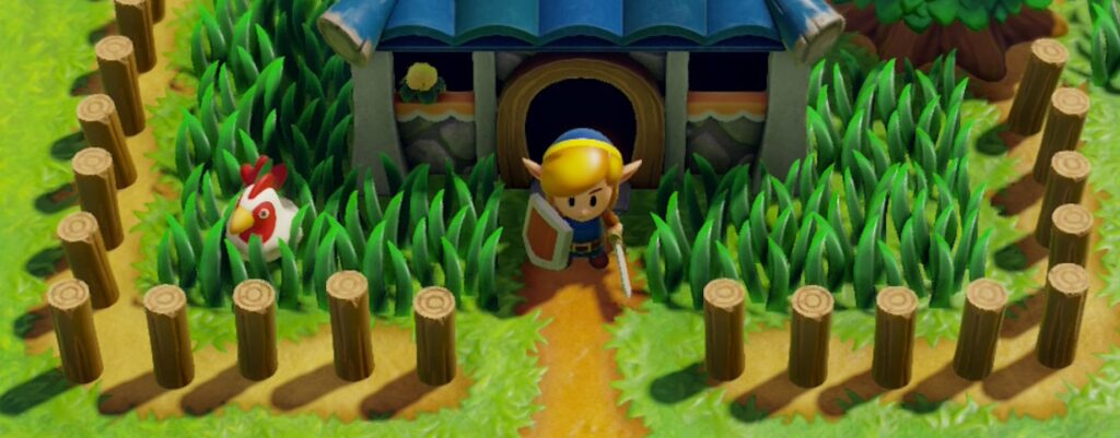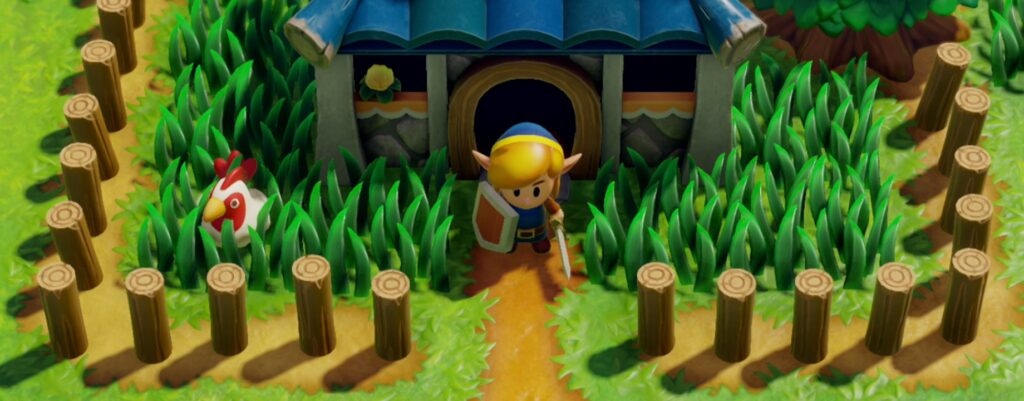 Link’s Awakening, Switch 2, docked. Note fewer jaggies and sharper textures, especially on top of the posts.