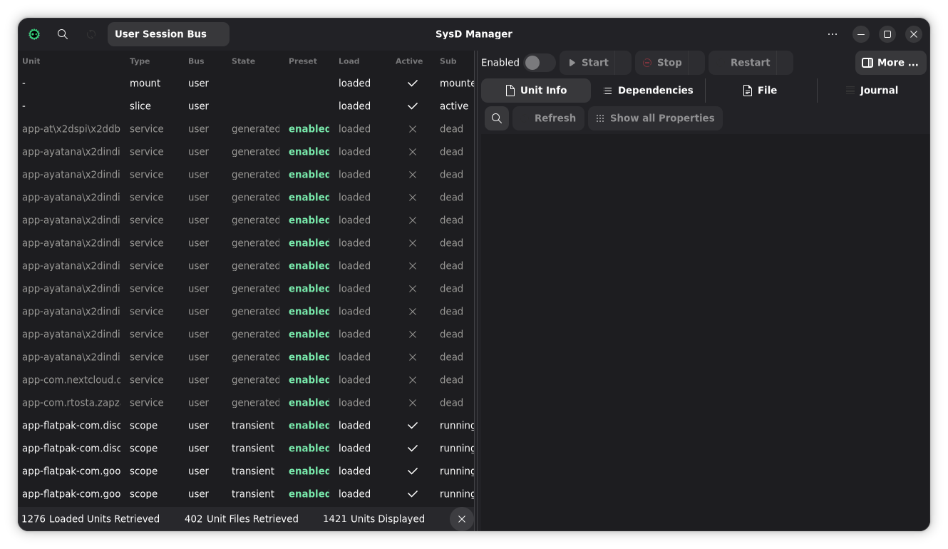 • SystemD Manager: A dedicated GUI for managing systemd services and see their status and output