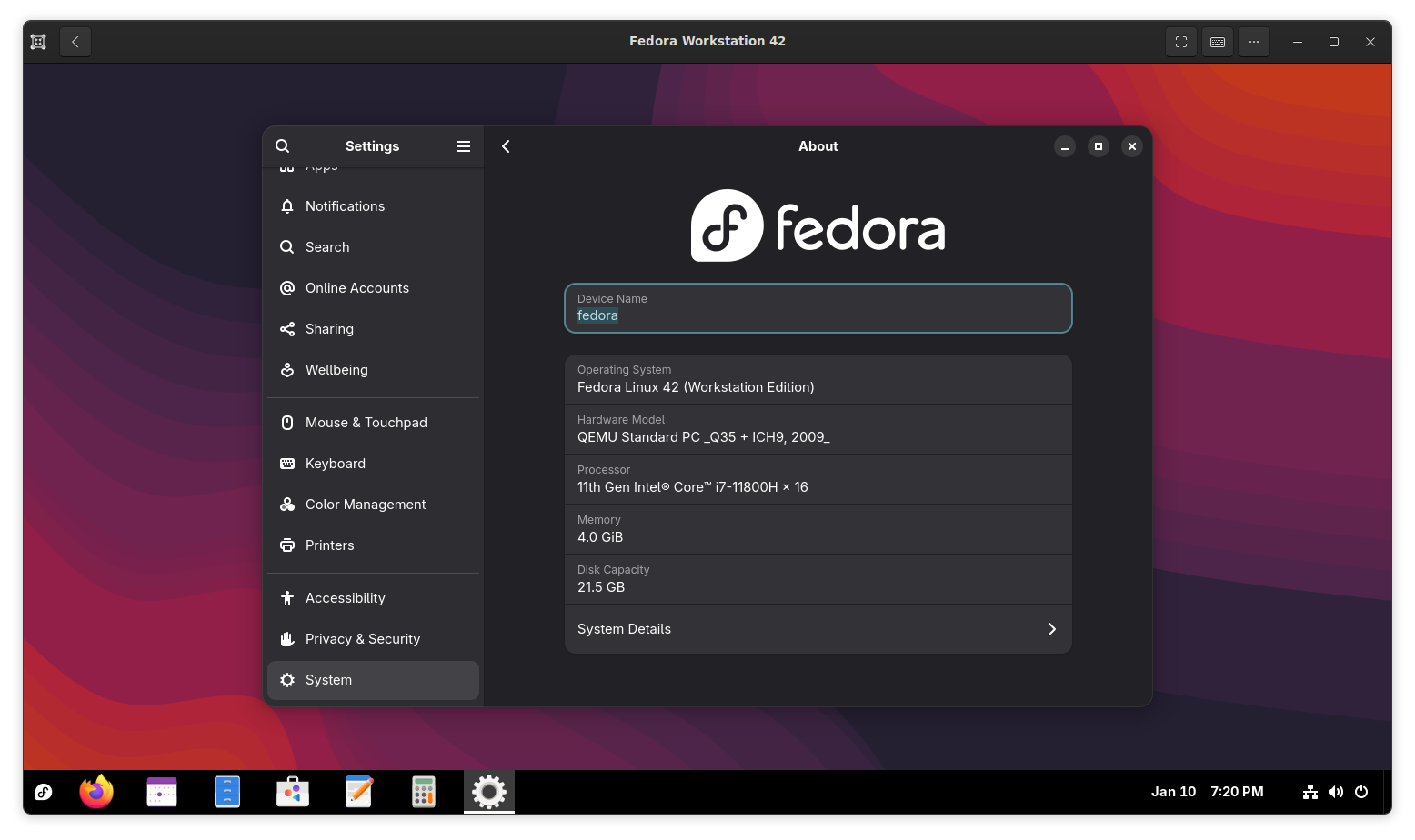 Running Fedora 42 in GNOME Boxes on Ubuntu 25.10