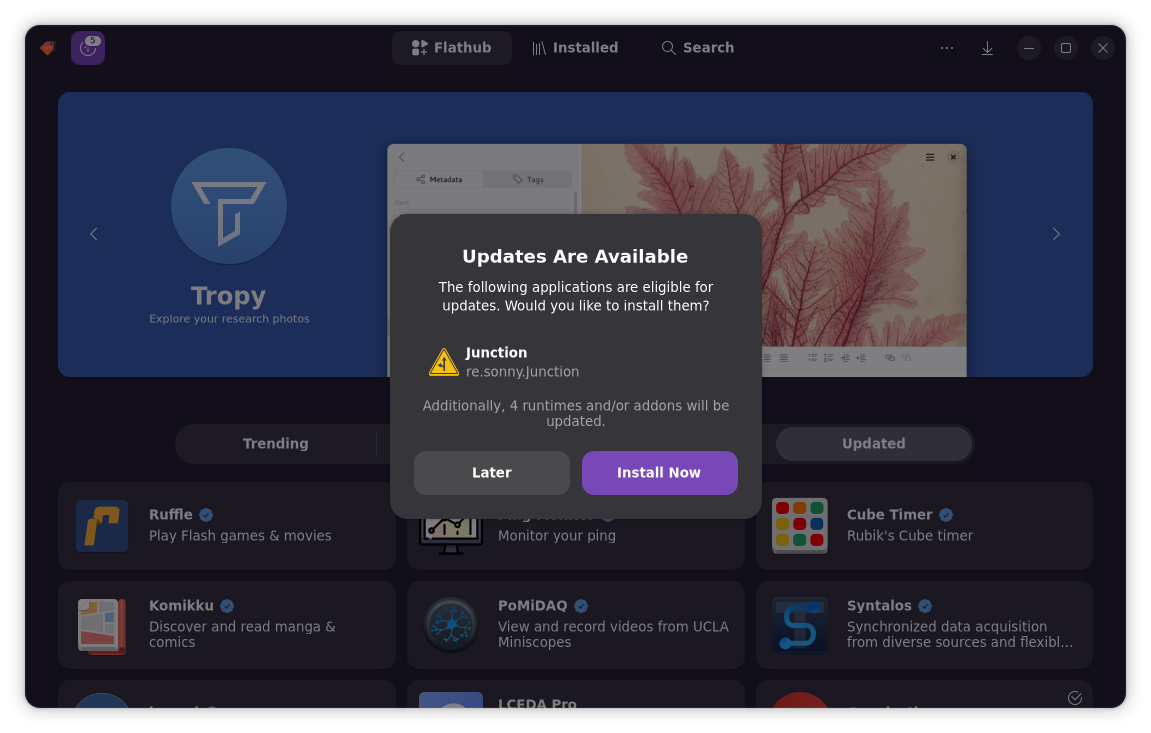 Using Flatpaks a tool like with Bazaar? Updates are two clicks away.