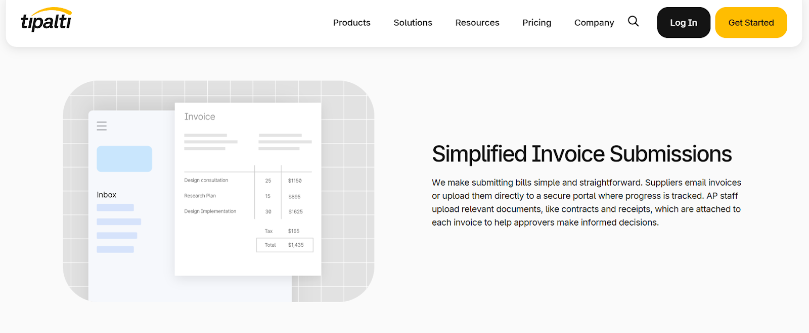 Tipalti offers a comprehensive invoice management solution as part of its broader accounts payable automation platform. The platform is designed primarily for mid-market and enterprise-level businesses that manage high volumes of invoices. It offers multiple methods for invoice capture, including email, a supplier portal, and OCR scanning, which can read and process invoice data with high accuracy.