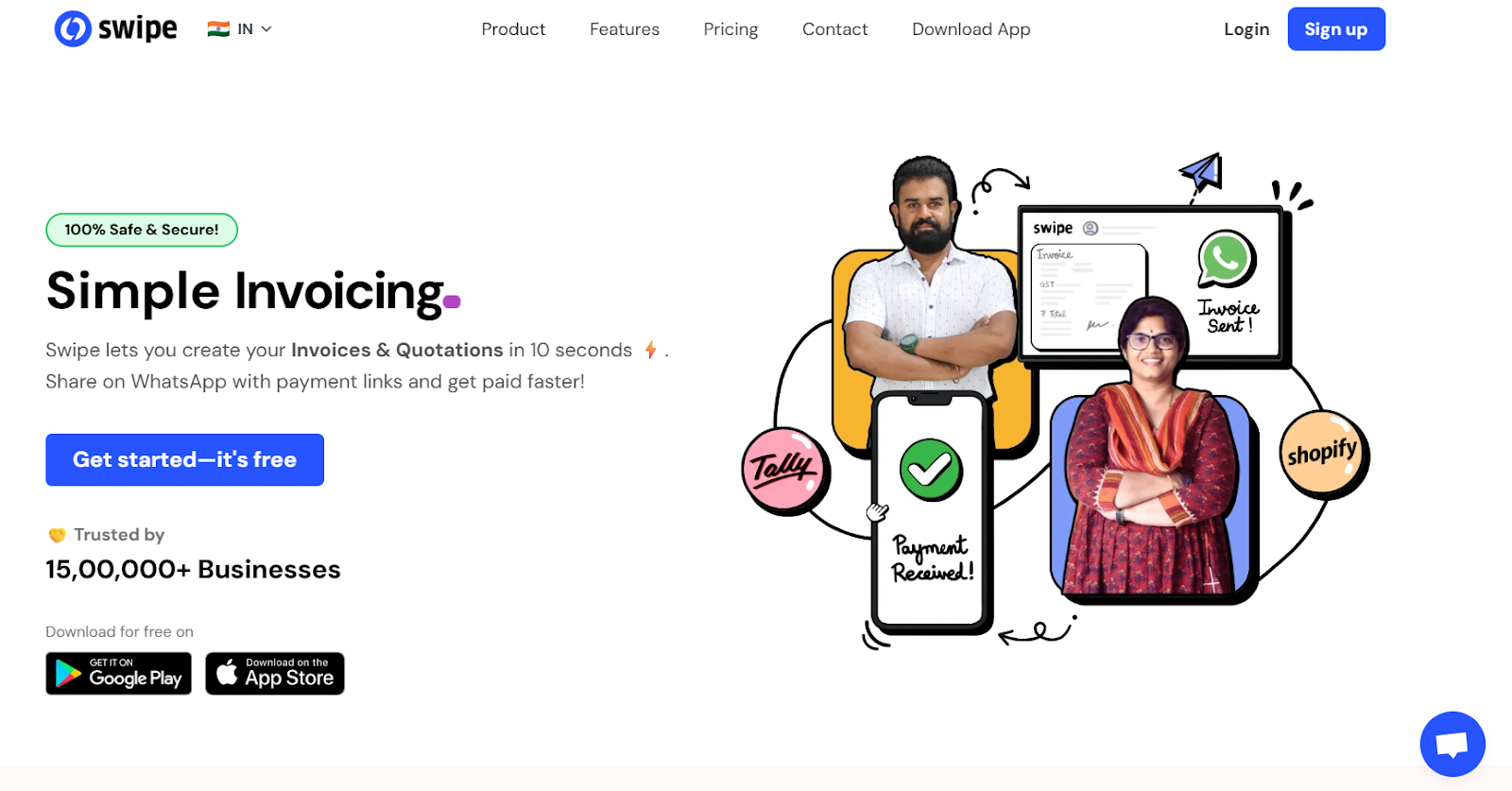 In addition to invoicing, Swipe offers a suite of complementary features, including inventory management, expense tracking, business reporting (including GSTR-1), and the ability to create a simple “online store” to showcase products.