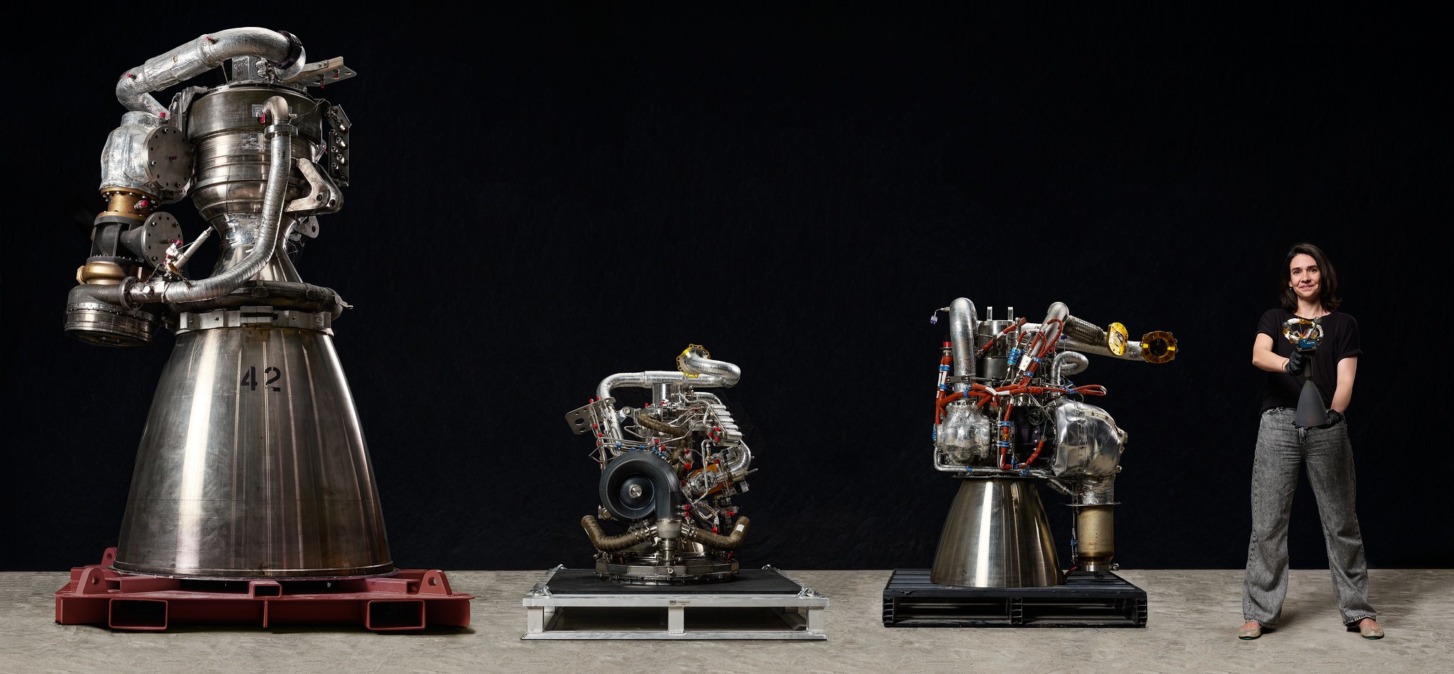 Firefly Aerospace started as a propulsion company. This image released by Firefly earlier this year shows the company’s family of engines. From left to right: Miranda for the Eclipse rocket; Lightning and Reaver for the Alpha rocket; and Spectre for the Blue Ghost and Elytra spacecraft.