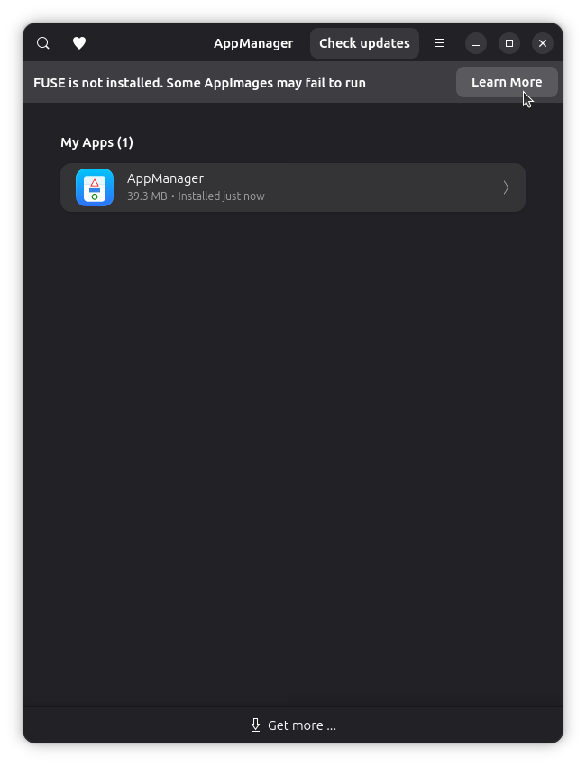 If AppManager shows you an error saying that “FUSE is not installed. Some AppImages may fail to run.” Then you can fix that by running the following commands: