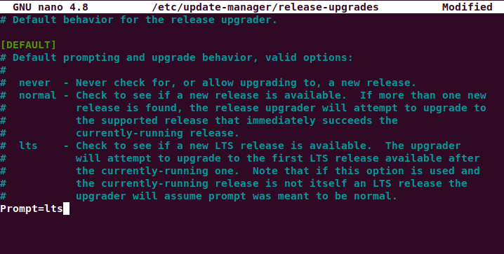 Next, you need to set your system to look for LTS releases by editing the configuration file.