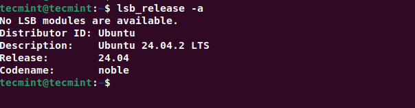 Finally, check that you’ve successfully upgraded to Ubuntu 24.04 LTS: