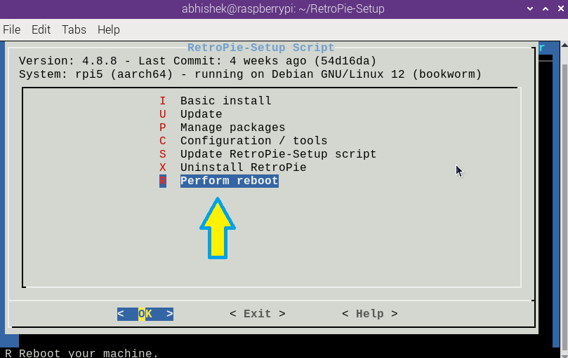 Next, navigate to the “RetroPie-Setup” directory that was created when you cloned the repository.