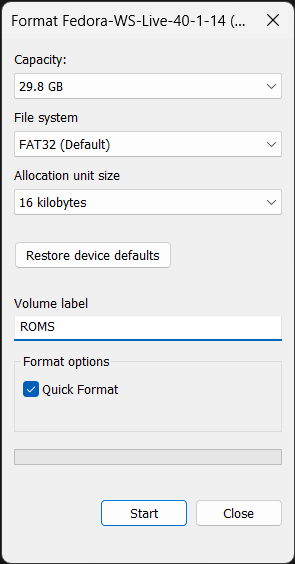 This is the most straightforward method. Just format a USB drive to FAT32. I’m doing a Quick format in Windows: