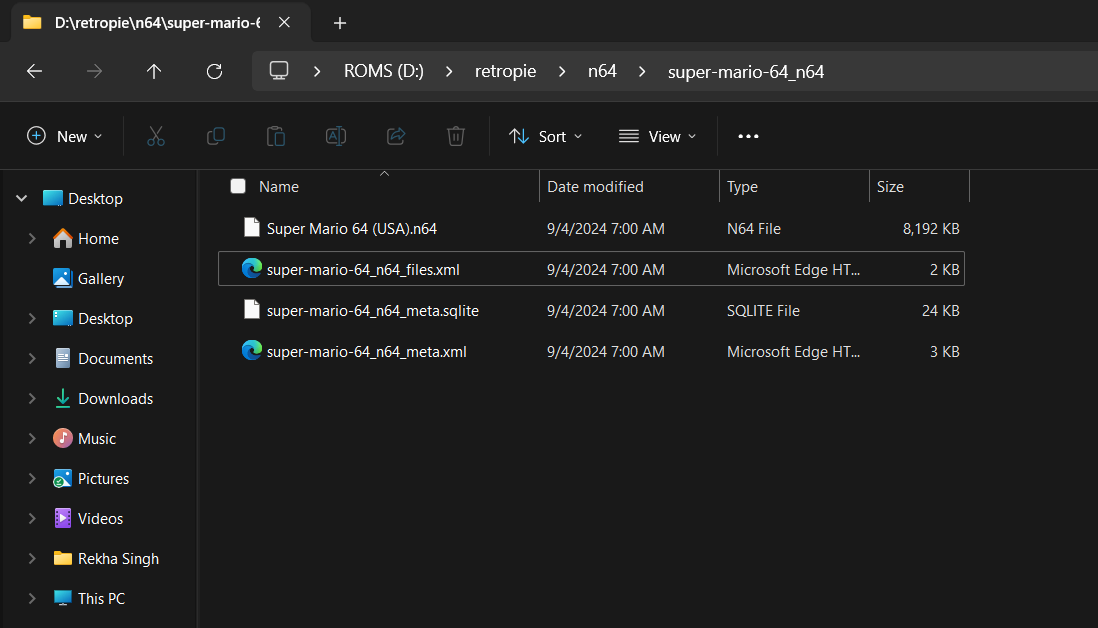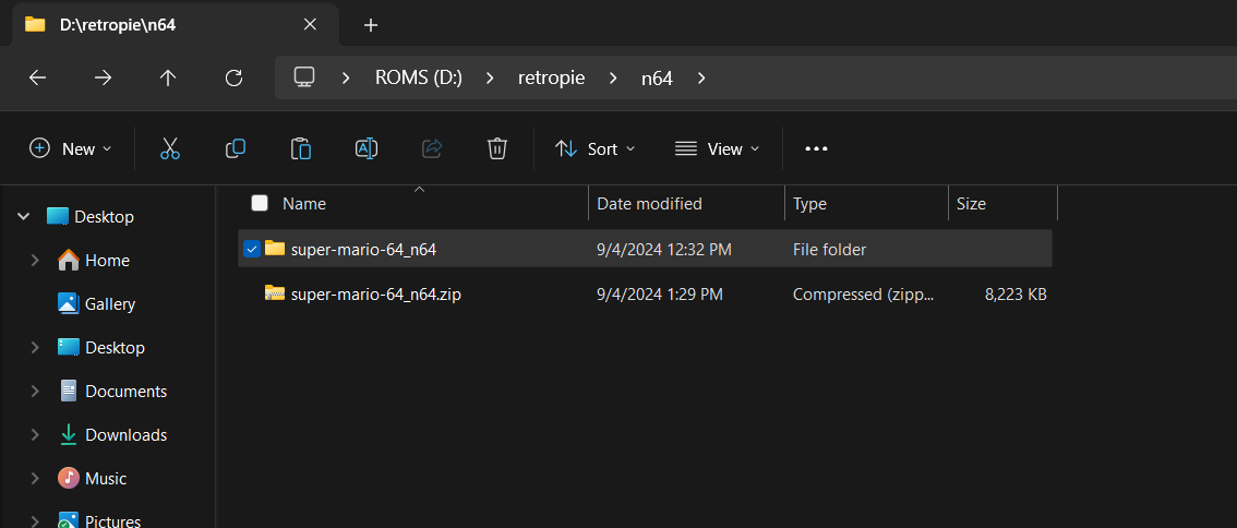I’m saving my ROMs in this directory: /home/user/RetroPie/roms/n64: