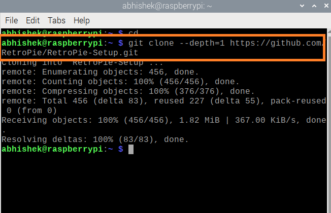 Now, use the commands below to clone the RetroPie setup script into your home directory: