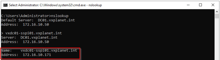 SSP Installer FQDN: vxdc01-sspi01.vxplanet.int