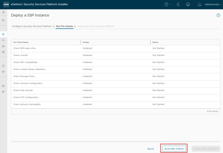 Configuration inputs are now done, we will run pre-checks to confirm deployment readiness. The pre-check process will also deploy a temporary pre-check VM with the sizing of a worker node to validate network configurations. Any errors or warnings in the pre-checks result need to be remediated before proceeding with deployment.