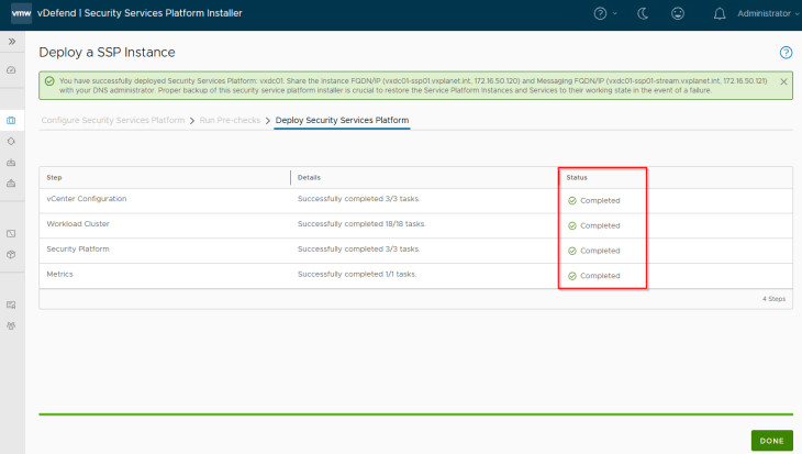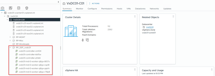 Success!!! SSP Instance deployment has succeeded. We should see the SSP Instance VMs deployed under the ‘RP_SSP_<InstanceName>’ resource pool in the management vCenter.