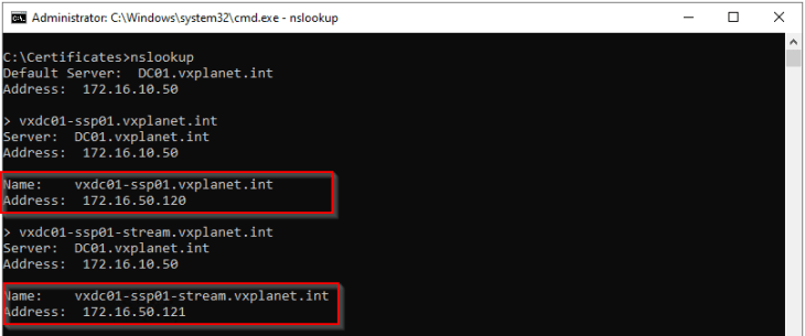 SSP Messaging FQDN: vxdc01-ssp01-stream.vxplanet.int