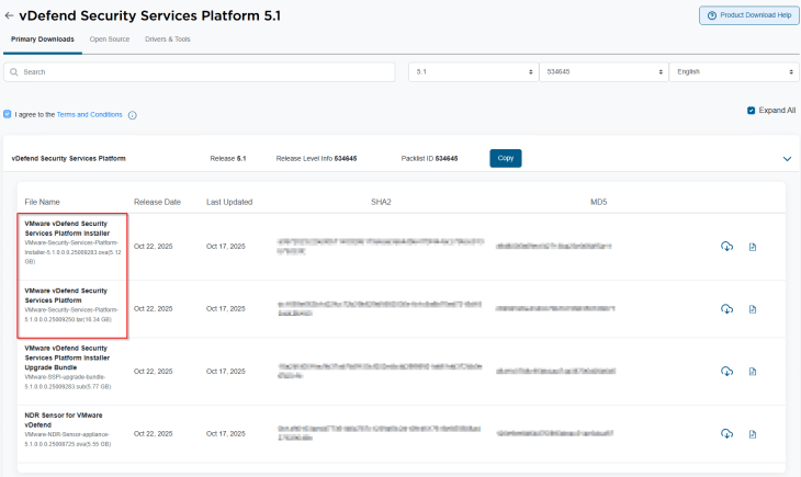 The necessary binaries for SSP Installer and SSP Instance are downloaded from the Broadcom Support portal. SSP Installer is available as an ova bundle, and SSP Instance package is available as a tar file having the node VM templates and container images.