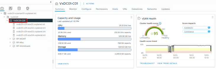 The current lab environment is a consolidated 4-node vSphere cluster that hosts both the management components and compute workloads. Both SSP Installer and SSP Instance will be deployed on to the same management vSphere cluster, using routed network topology (which we discussed in Part 1).